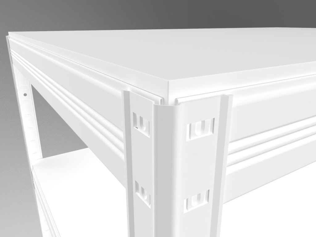 Haushaltsregal verfügt über 12 mm starke, weiß laminierte Spanplattenböden, die allseitig mit einer robusten ABS-Kante versehen sind. Das macht die Böden widerstandsfähiger gegen Feuchtigkeit und sehr pflegeleicht – einfach mit einem feuchten Tuch abwischen und trocknen. Die Montage ist dank des schraubenlosen Stecksystems schnell, einfach und sorgt für hohe Stabilität.