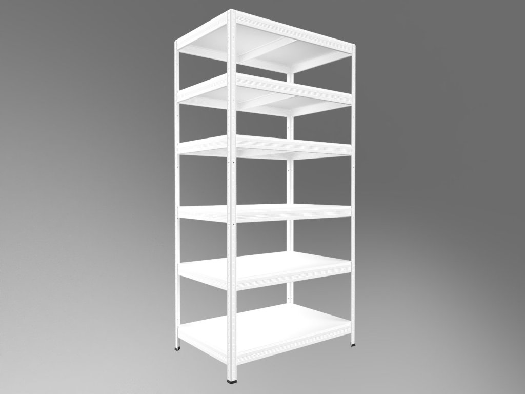 Lagerregal verfügt über 12 mm starke, weiß laminierte Spanplattenböden, die allseitig mit einer robusten ABS-Kante versehen sind. Das macht die Böden widerstandsfähiger gegen Feuchtigkeit und sehr pflegeleicht – einfach mit einem feuchten Tuch abwischen und trocknen. Die Montage ist dank des schraubenlosen Stecksystems schnell, einfach und sorgt für hohe Stabilität.