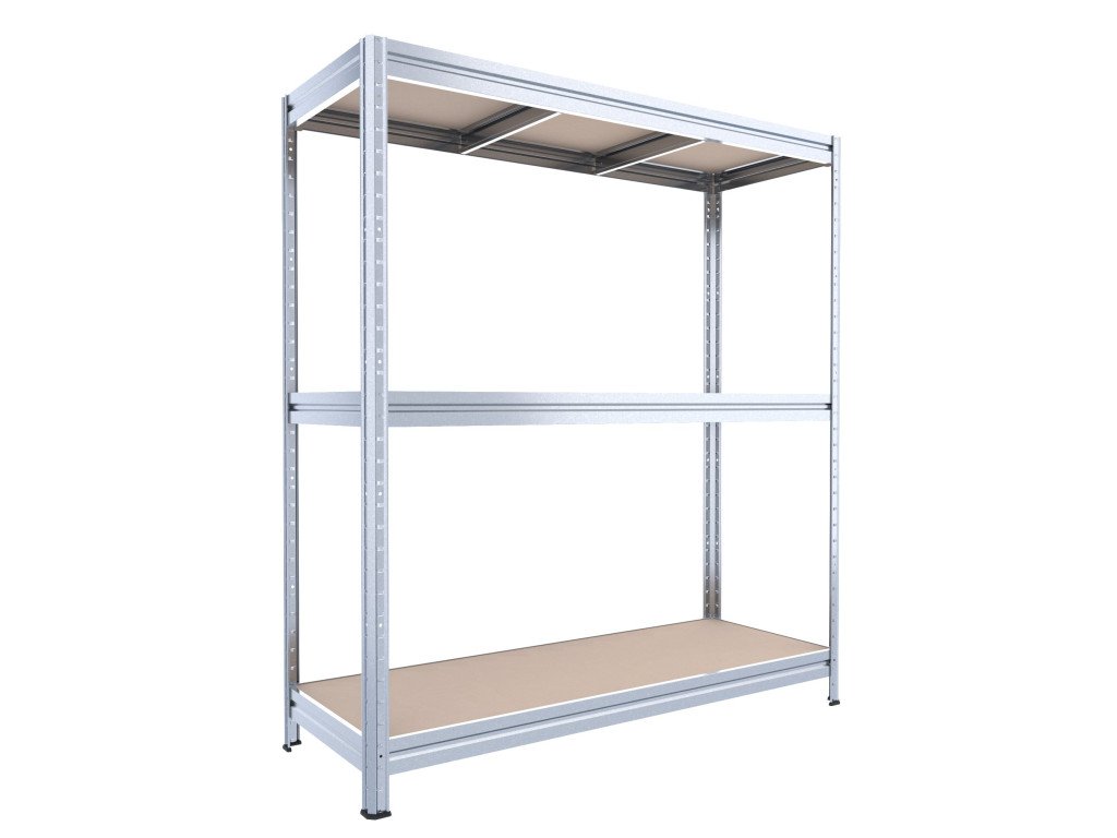 Velký regál do skladu Biedrax 60 x 160 x 180 cm, pozink, 3 police MDF, nosnost 400 kg na polici