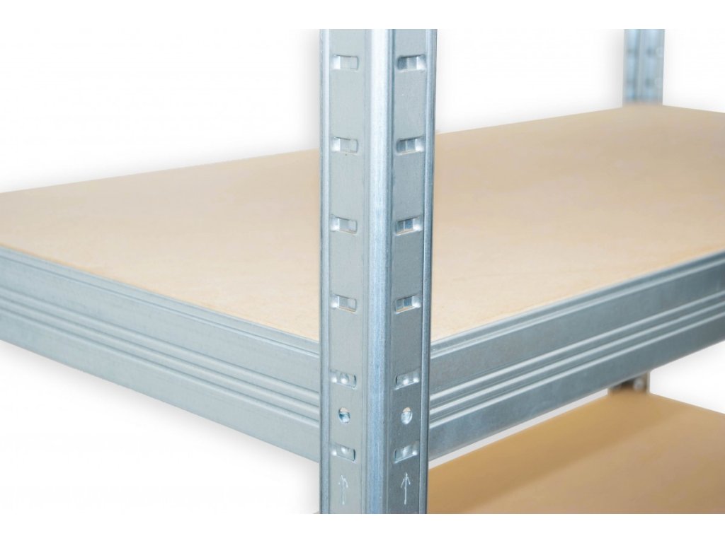 Lagerregal besteht aus einer Metallkonstruktion mit Stecksystem, mit Holzböden MDF - Holzwerkstoffplatte bestehend aus harzgebundenen Holzfasern, diese Platten sind aus natürlichen Materialien. Unterschied von klasische Holzspanplatte ist, dass die MDF Platte modern, stärker und ekologisch ist. MDF-böden sind nicht für feuchte Räume geeignet. Die montage dauert ca. 15 - 30 Minuten, dank des schraubloser Stecksystems. Die Fachböden können variabel eingesetzt werden. Lagerregal ist ideal für den Lager, den Keller, Werkstätte oder Garage.