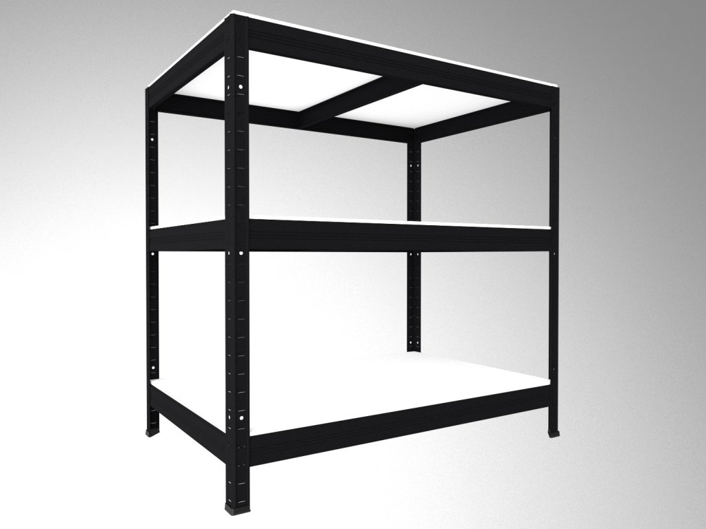 Schwerlastregal Biedrax 50 x 90 x 90 cm, Schwarz, 3 Fachböden weiß laminiert 12 mm, Fachlast 200 kg pro Fachboden