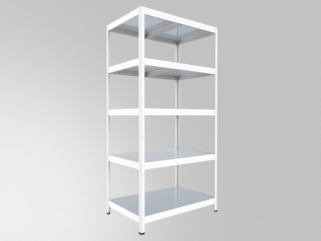 Schwerlastregal Biedrax 50 x 75 x 240 cm, Weiß, 5 Stahlböden verzinkt, Fachlast 150 kg pro Fachboden