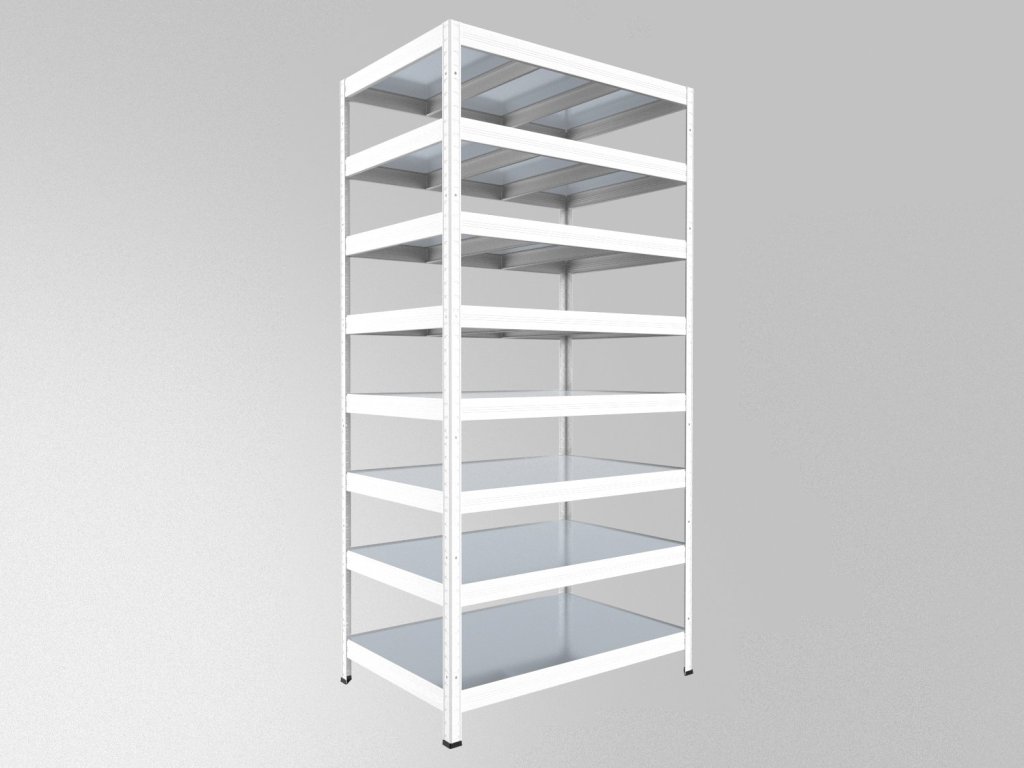 Schwerlastregal Biedrax 60 x 120 x 240 cm, Weiß, 8 Stahlböden verzinkt, Fachlast 150 kg pro Fachboden