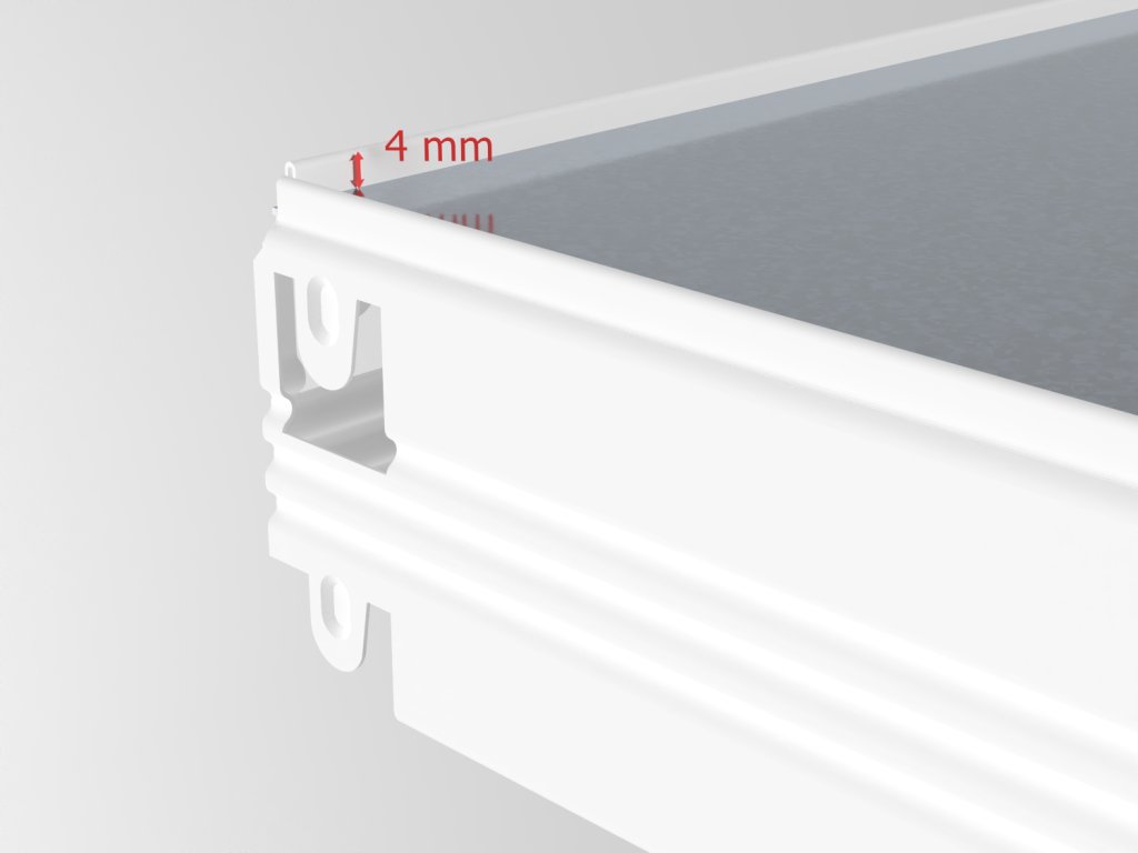 - Die Höhe des Fachbodens beträgt 56 mm (der Boden ist eingelassen und bildet eine 4 mm hohe Schutzkante).