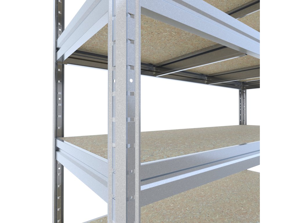 Grosses Fachbödenregal Biedrax, Metallkonstruktion und Holzspannplatte Boden JSD 10 mm. Regale mit JSD-Spanplattenböden eignen sich auch für Feuchträume. Feuchträume: Schuppen, Pergolen, Keller usw. Regale mit JSD-Spanplattenböden sind nicht für den Außenbereich mit direkter Einwirkung von Niederschlag (Regen, Schnee usw.) geeignet. Sehr einfaches Montagesystem - Bodenträger werden in Regalbeinen einfach eingesteckt. Die Bodenträger muss man mit Gummihammer bis am ende Reinpassen. Damit ist höhe Stabilität garantiert. Montagge ist auch ganz einfach und schnell (ohne Schrauben)! Regal ist sehr stabil und praktisch, schnelle Montage. Regal erhält auch Bodenversteifungen gegen durchbiegung.
