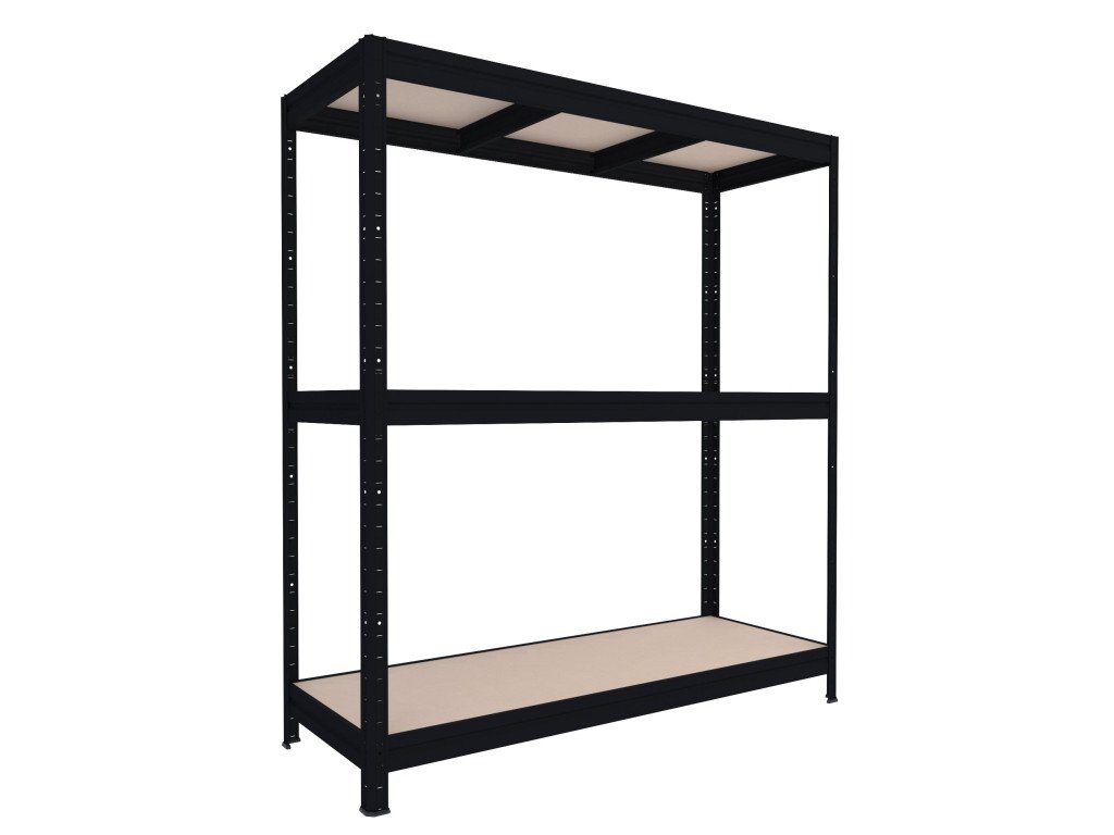 Velký regál do dílny Biedrax 60 x 160 x 180 cm, černý, 3 police MDF, nosnost 400 kg na polici