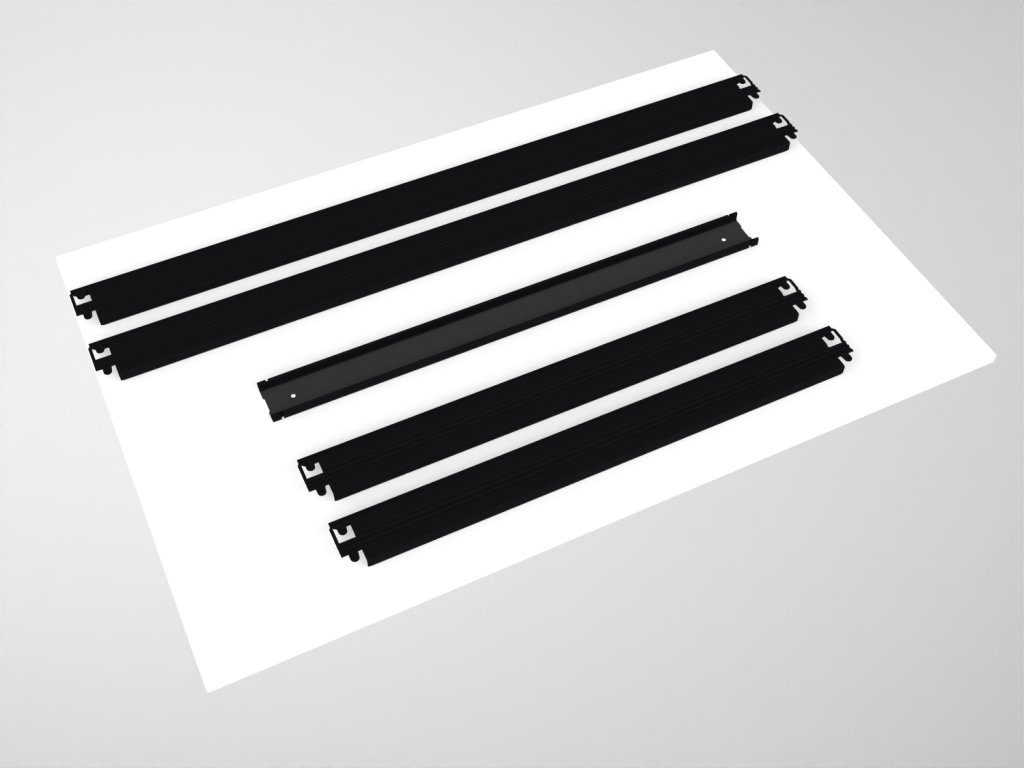 - Výška patra je 64 mm (police přesahuje horní hranu nosníků o 7 mm)