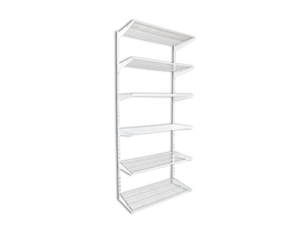 drátěná police k nástěnnému regálu Biedrax - komplet s nosníky - kovová konstrukce lakovaná práškovou barvou. nástěnný regálový systém Biedrax je velmi univerzální regálový systém a lze jej použít kdekoliv v domácnosti. ať už jako nástěnný regál v komoře pro běžné domácí potřeby, nebo jako botník pro sezónní obuv. ve spíži jako regál pro zásoby, v dílně pro uskladnění nářadí nebo v garáži pro uskladnění všeho možného. vzhledem k vysoké kvalitě provedení lze náš nástěnný regálový systém využít i jako regály do šatny pro oblečení.