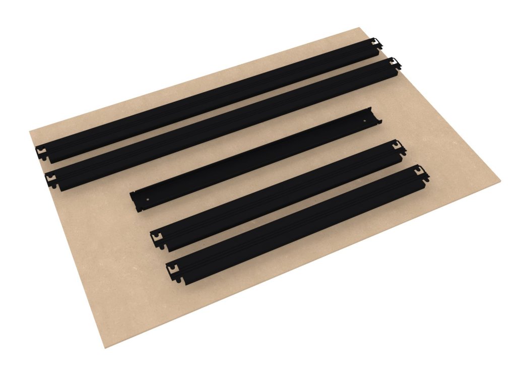 - Wysokość poziomu wynosi 58 mm (półka jest na równi z krawędzią belek)