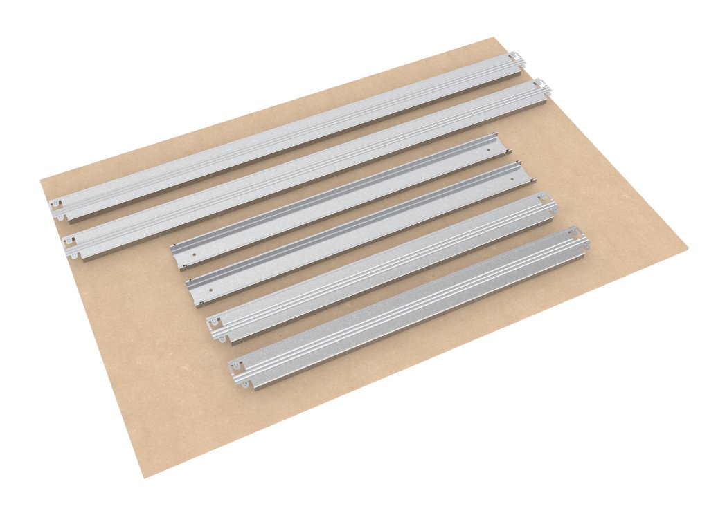- Zestaw zawiera jeden kompletny poziom (półkę), zgodnie z pierwszym zdjęciem w galerii powyżej: komplet belek nośnych, poprzeczki oraz płytę MDF. Wszystko, co niezbędne do sprawnej rozbudowy regału.