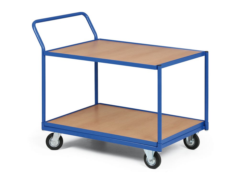 Dílenský policový vozík na přepravu zboží či materiálu. Konstrukce vozíku je svařena z ocelových profilů. Nosnost vozíku je 400 kg. Lakováno vypalovacím práškovým lakem v odstínu RAL 5005 - modrá. Police dřevotříska ohraněná překližkovou hranou zabraňuje vypadnutí převáženého materiálu. Rozměr police je 1000 x 700 mm. Kola jsou vybavena poklicí, která brání namotávání nití a provázků a také zanášení ložiska různými nečistotami, čímž se prodlužuje životnost kola. Kola jsou o průměru 200 mm a 2 jsou pevná a 2 otočná podle vlastní osy. Kola lze na objednávku doplnit o dvojčinnou brzdou proti pojezdu i proti otáčení kolem svislé osy.