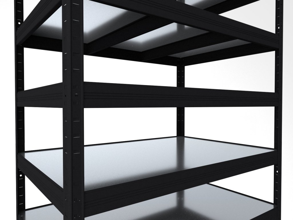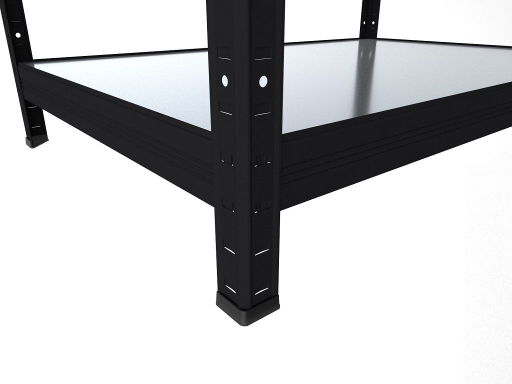 Regał bezśrubowy (wciskany) z półkami z blachy ocynkowanej, które są trwałe, zmywalne i nadają się również do wilgotnych środowisk, takich jak piwnice, garaże czy szklarnie. Unikalny system bezśrubowy gwarantuje szybki montaż i wysoką stabilność. Półki są dodatkowo sprytnie osadzone w belkach, tworząc praktyczną 4-milimetrową krawędź, która zapobiega wypadaniu przechowywanych przedmiotów.