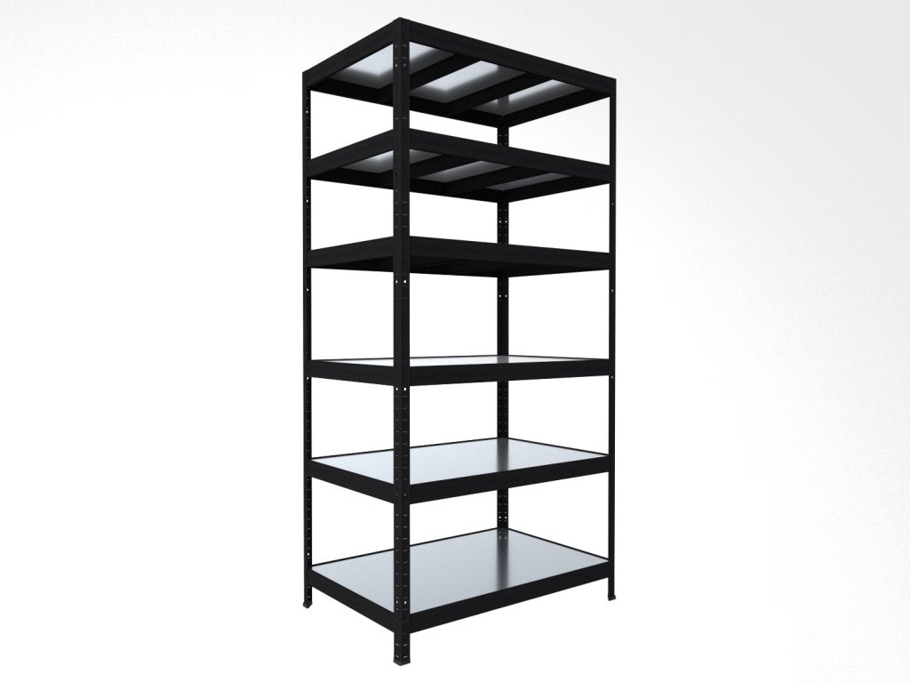 Regał bezśrubowy (wciskany) Biedrax 35 x 120 x 180 cm, czarny, 6 półek metalowych ocynk, nośność 150 kg na półkę