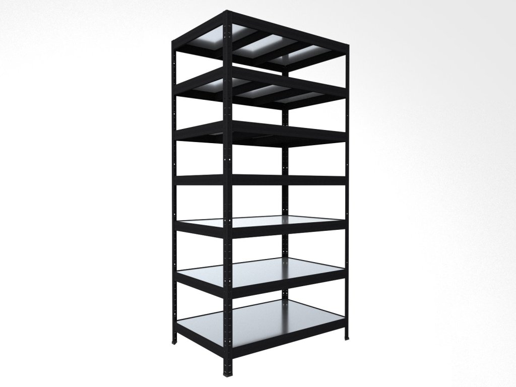 Regał bezśrubowy (wciskany) Biedrax 35 x 120 x 210 cm, czarny, 7 półek metalowych ocynk, nośność 150 kg na półkę