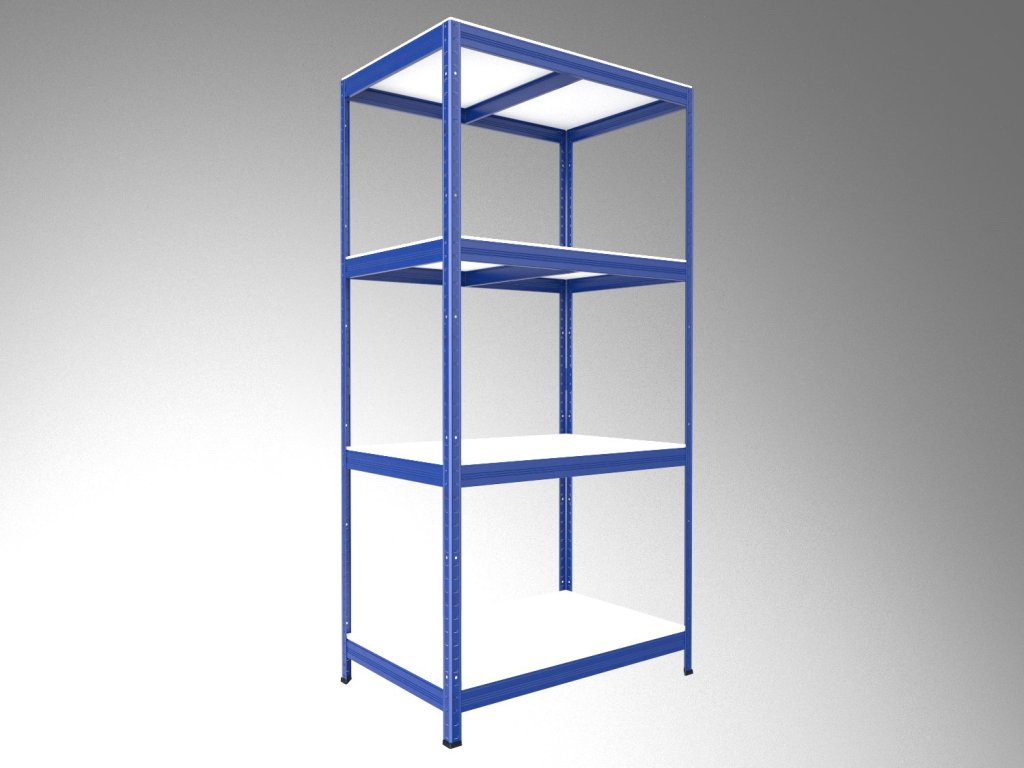 Regał gospodarczy Biedrax 35 x 90 x 180 cm, niebieski, 4 półki białe laminowane 12mm, nośność 200 kg na półkę