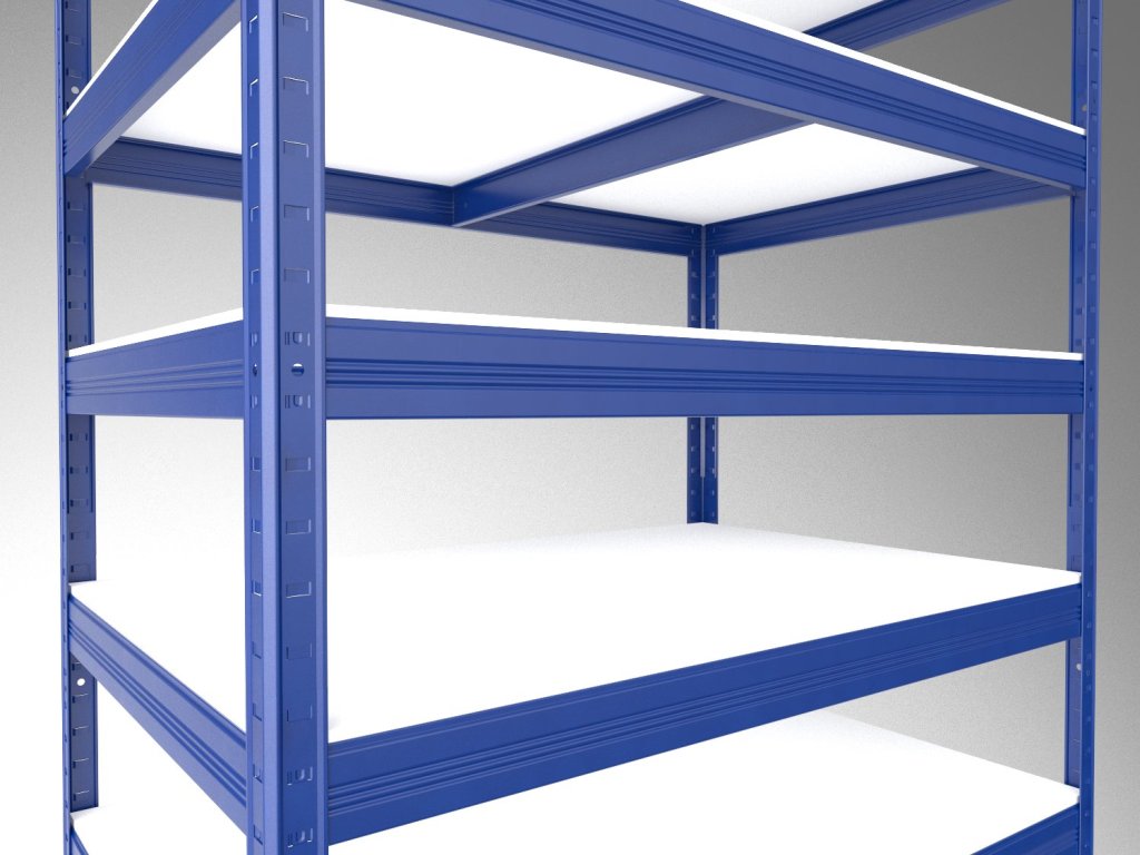 Regał gospodarczy Biedrax 45 x 75 x 90 cm, niebieski, 4 półki białe laminowane 12mm, nośność 200 kg na półkę