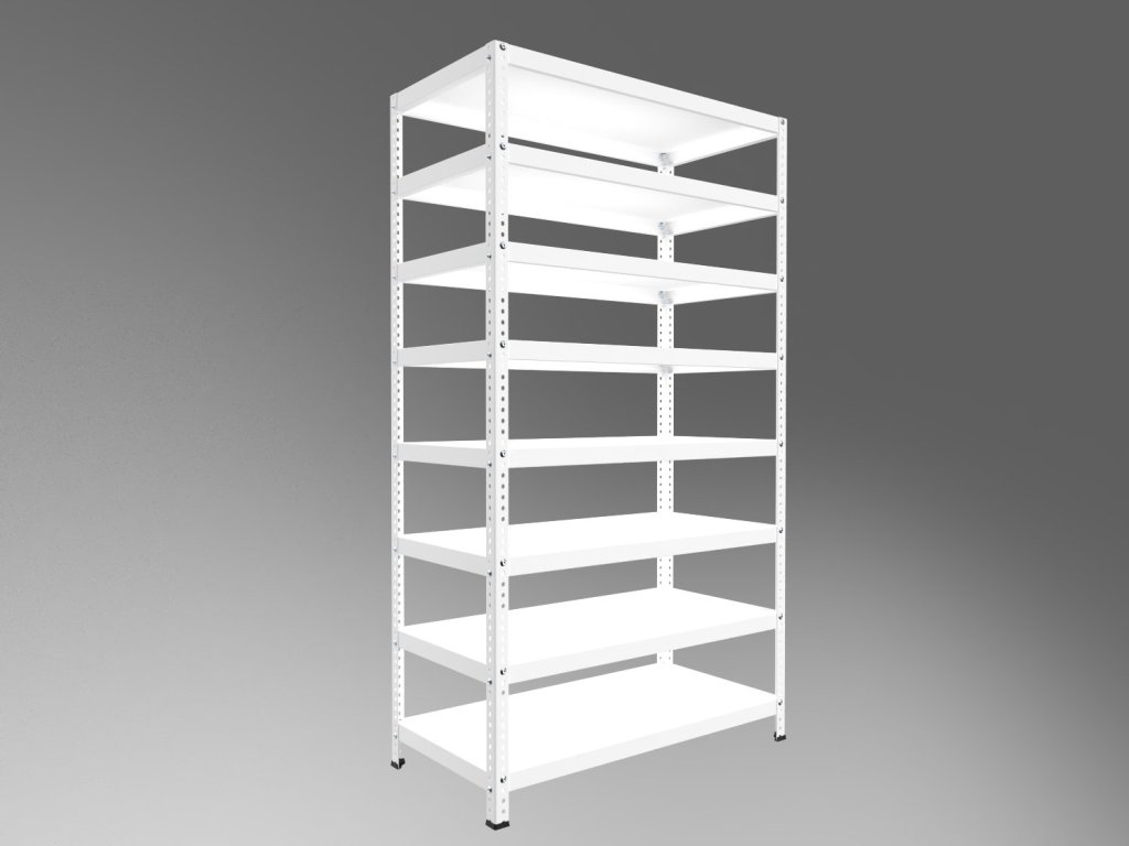 Regał skręcany Biedrax 30 x 100 x 250 cm, biały, 8 półek, nośność 150 kg na półkę