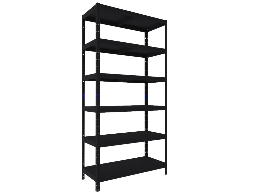 Regál do domácnosti Biedrax 40 x 100 x 270 cm, černý, 6 polic plech, nosnost 100 kg na polici