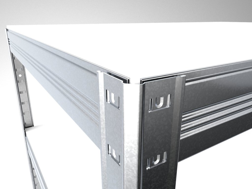 - Stojiny regálu jsou dělené a spojují se spojkami.