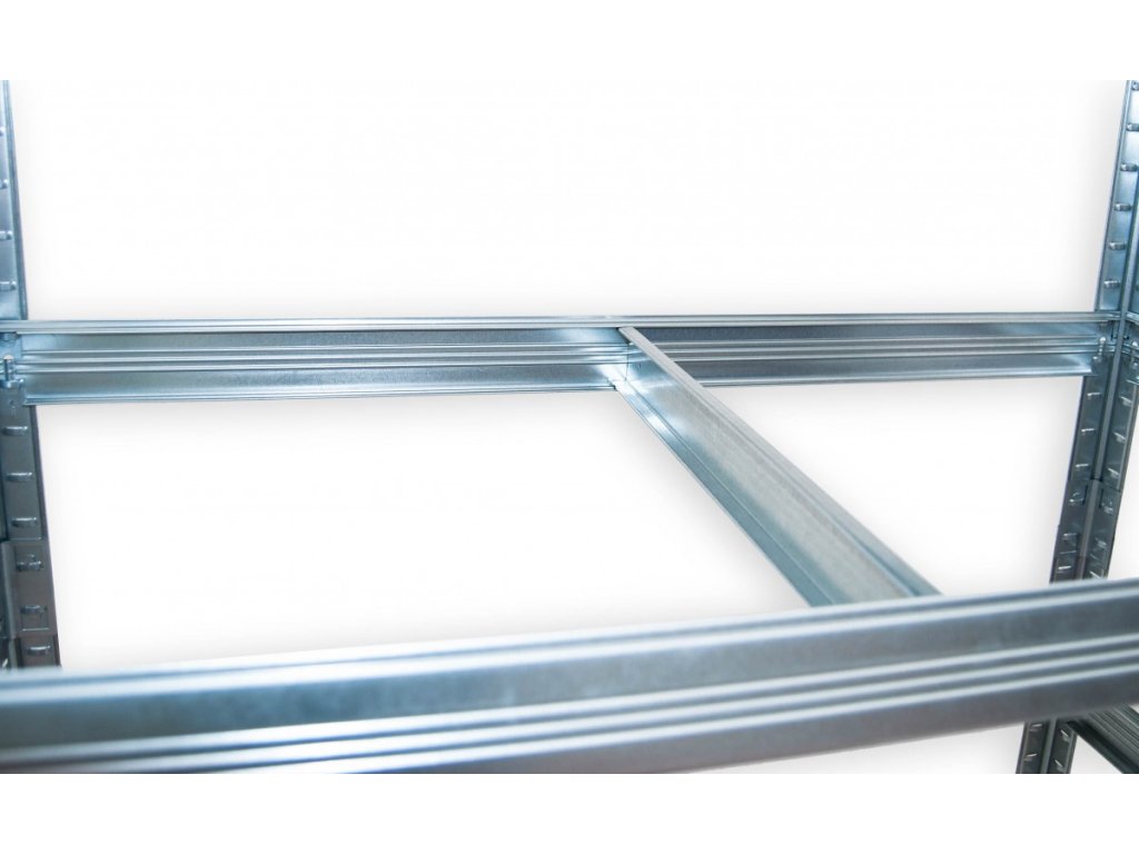 - výztuhu nasuňte do nosníků před tím, než zacvaknete nosníky do stojinek a posuňte výztuhu doprostřed police