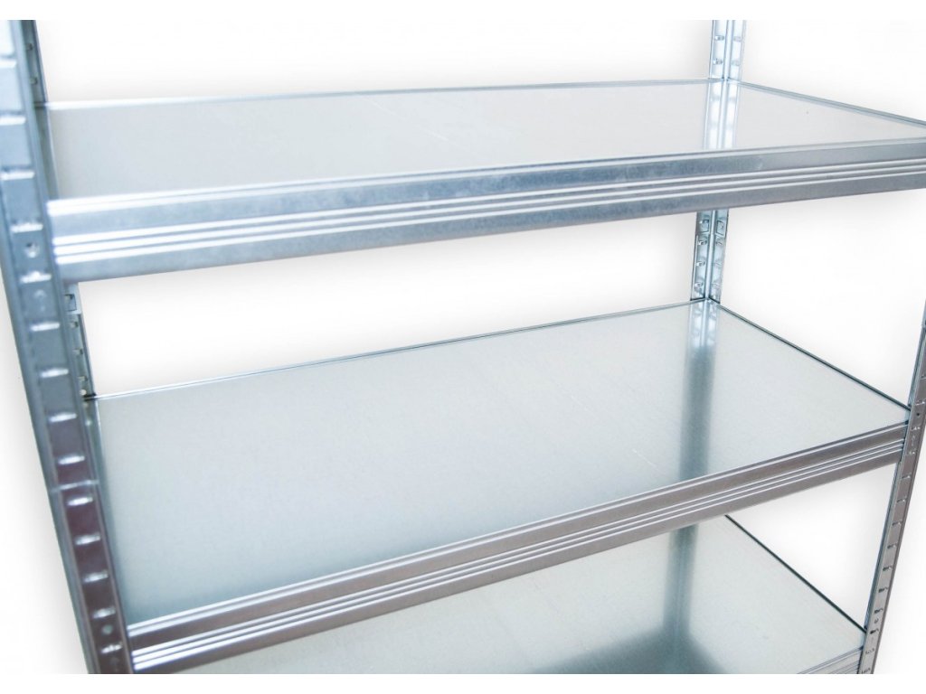 - kovové stojiny, nosníky, výztuhy i police jsou vyrobeny z pozinkovaného plechu