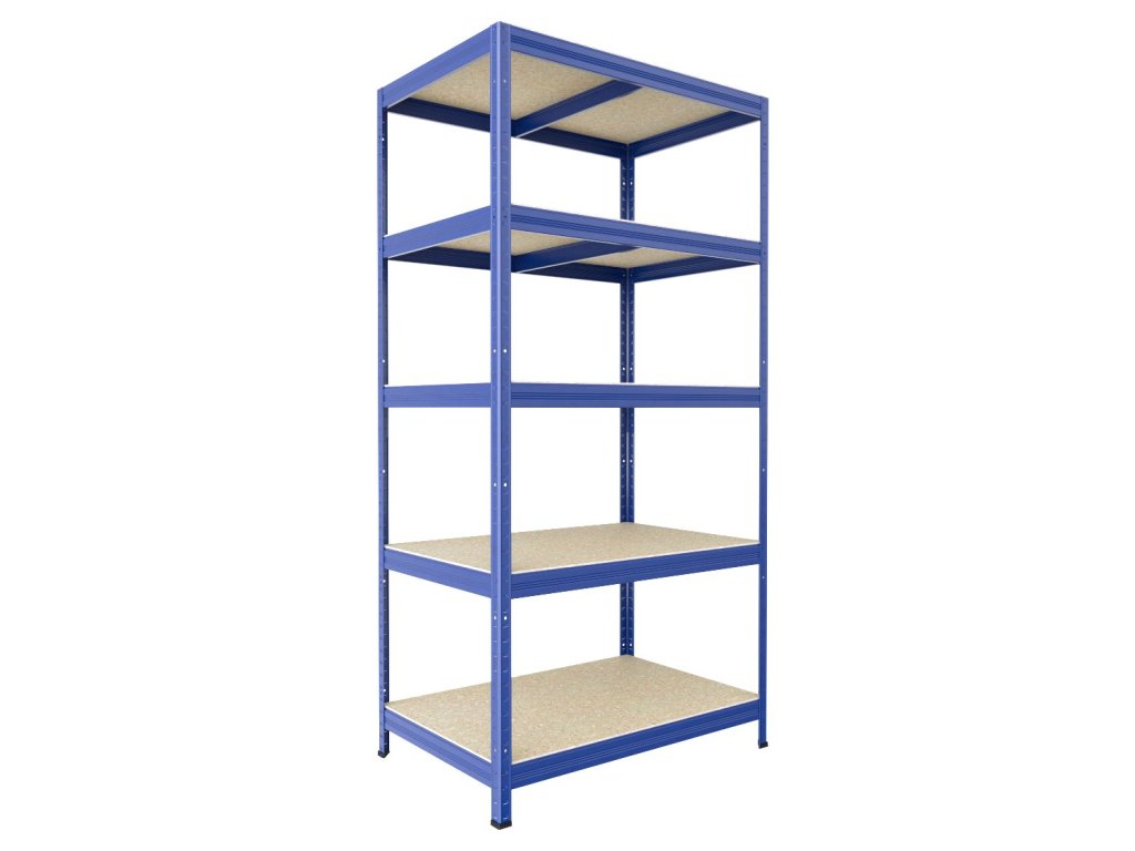Bezskrutkový regál Biedrax 35 x 60 x 210 cm, modrý, 5 políc OSB 10 mm, nosnosť 200 kg na policu