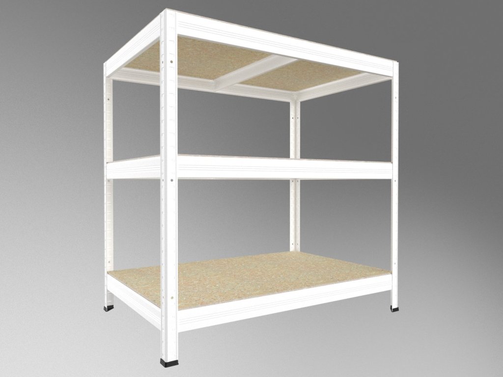 Bezskrutkový regál s policami z drevotriesky OSB 10 mm. Regály s OSB policami sú vhodné aj do vlhkých priestorov ako sú prístrešky, pergoly či pivnice. Nie sú však určené do exteriéru s priamym pôsobením zrážok. Unikátny bezskrutkový systém montáže umožňuje rýchle zostavenie – nosníky stačí zasunúť do stojín a zaistiť ľahkým poklepaním. Pevné spojenie bez skrutiek zaručuje tuhosť celej konštrukcie.
