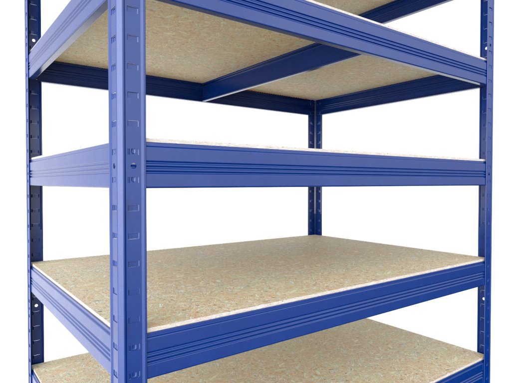 Bezskrutkový regál s policami z drevotriesky OSB 10 mm. Regály s OSB policami sú vhodné aj do vlhkých priestorov ako sú prístrešky, pergoly či pivnice. Nie sú však určené do exteriéru s priamym pôsobením zrážok. Unikátny bezskrutkový systém montáže umožňuje rýchle zostavenie – nosníky stačí zasunúť do stojín a zaistiť ľahkým poklepaním. Pevné spojenie bez skrutiek zaručuje tuhosť celej konštrukcie.