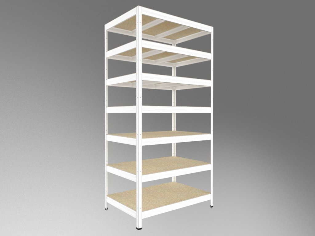 Bezskrutkový regál Biedrax 35 x 75 x 210 cm, biely, 7 políc OSB 10 mm, nosnosť 300 kg na policu