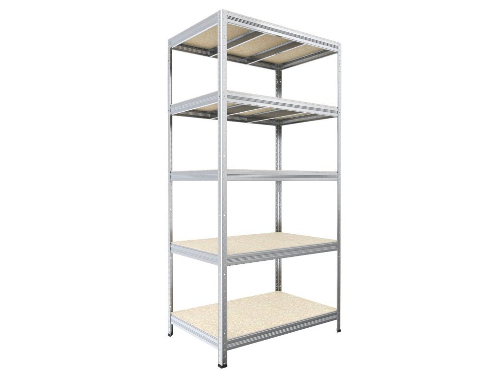 Bezskrutkový regál Biedrax 35 x 75 x 210 cm, pozink, 5 políc OSB 10 mm, nosnosť 300 kg na policu