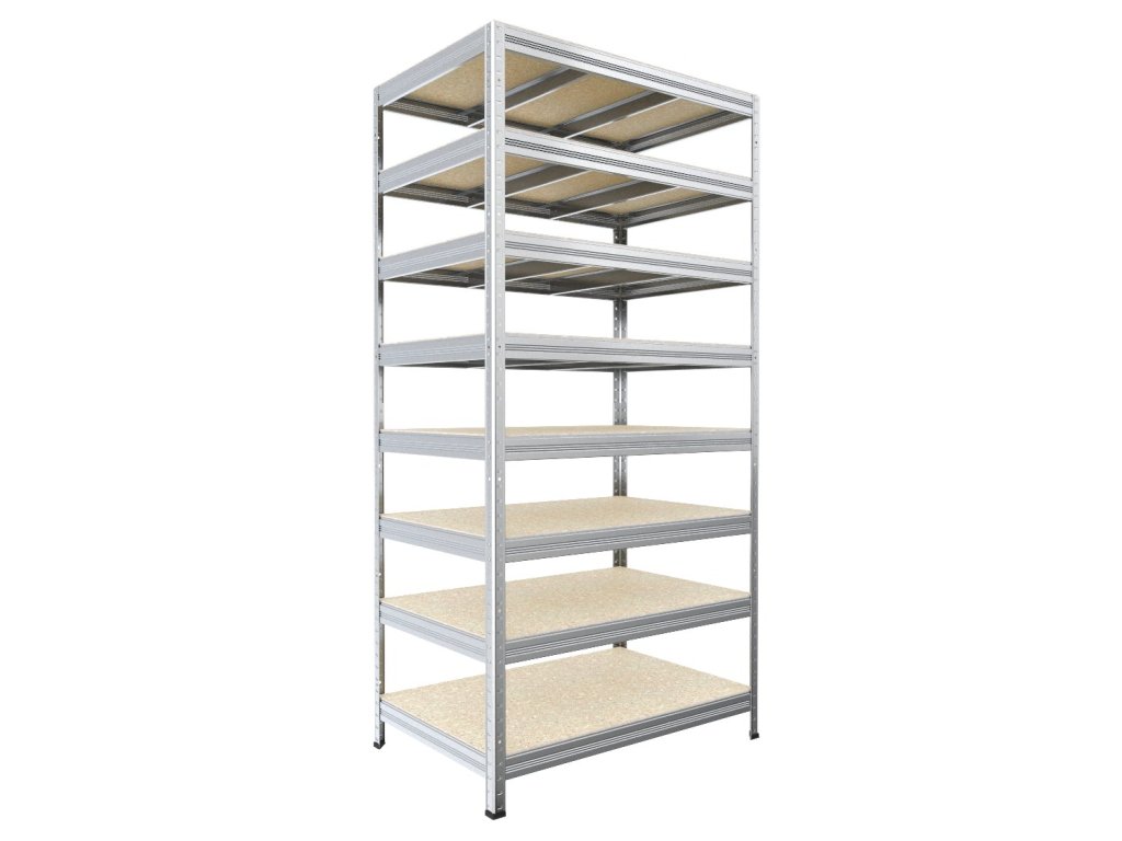 Bezskrutkový regál Biedrax 35 x 75 x 210 cm, pozink, 8 políc OSB 10 mm, nosnosť 300 kg na policu