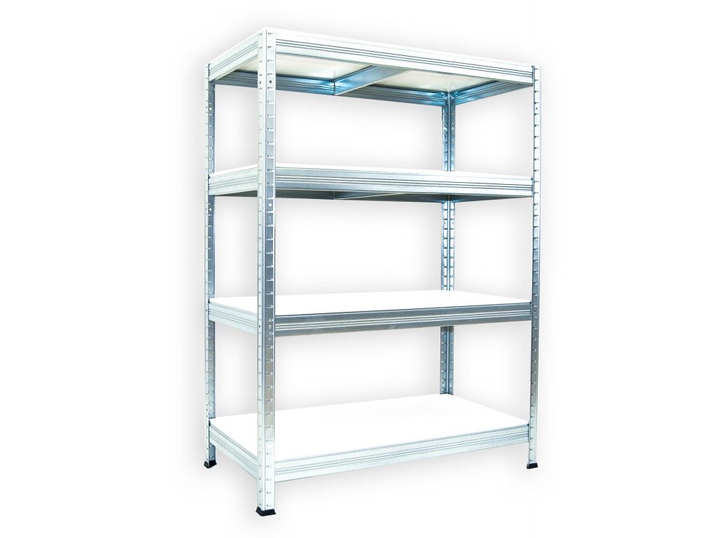 kovový regál bezskrutkový Biedrax 45 x 60 x 120 cm, pozinkovaný - 4 police biele lamino 12mm