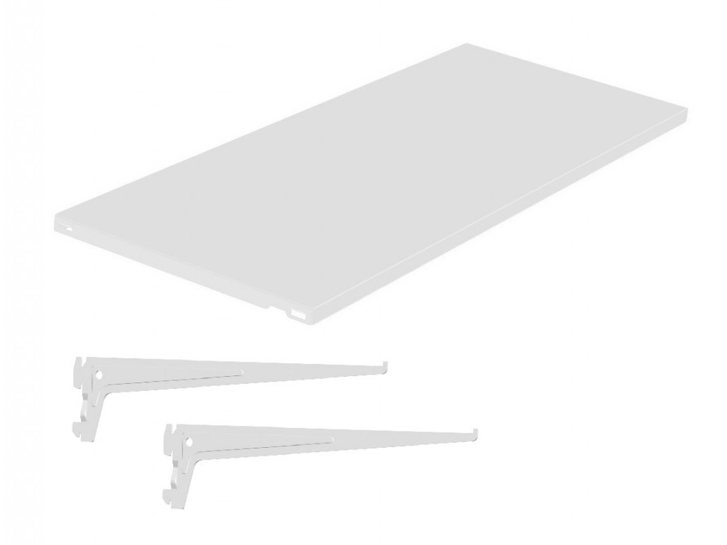 Plechová polica 25 x 80 cm pre nástenné regály Biedrax, biela - komplet s nosníkmi