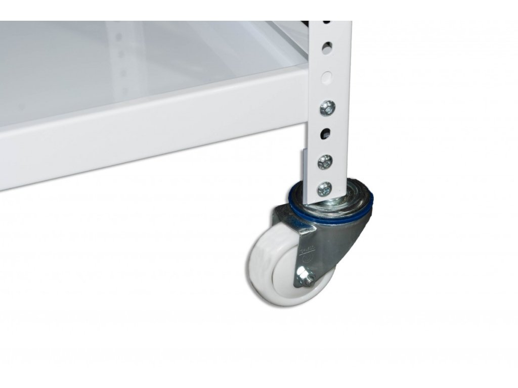 Pojízdný policový vozík Biedrax vhodný do skladu pro převoz materiálu, do garáže na nářadí, do obchodu na zboží, do archívu pro převoz dokumentů nebo i do domácnosti na květiny, sazenice a podobně (pozinkované provedení vozíku lze používat například i ve sklenících). Kvalitní pojízdný vozík s 2 bržděnými a 2 nebržděnými kolečky zaručuje velmi dlouhou životnost díky použitým materiálům. Šroubovaný systém montáže umožňuje nastavit police dle vašich představ a zároveň pevné spojení a stabilitu při manipulaci.