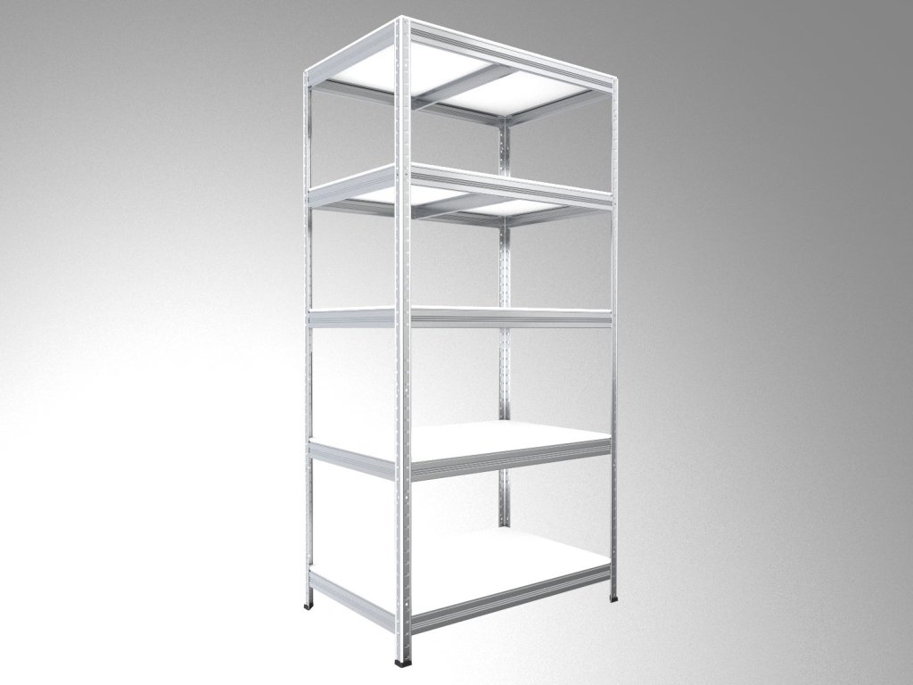 Regál do pivnice Biedrax 60 x 90 x 210 cm, pozink, 5 políc biele lamino 12mm, nosnosť 200 kg na policu
