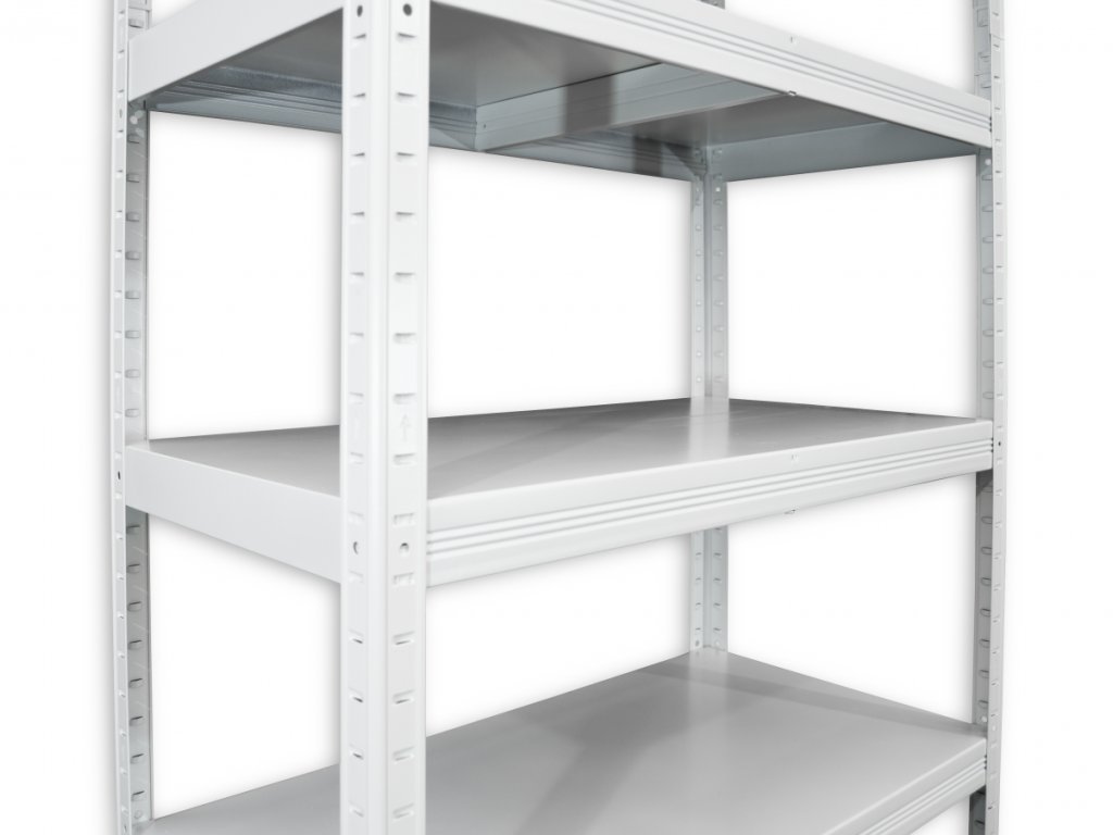Kovový regál do skladu s kovovými policemi je omyvatelný běžnými čistícími prostředky. Kovový regál do skladu s kovovými policemi lze používat i ve vlhkém prostředí. Montáž regálu zvládnete během pár minut. Police zasunete do stojinek a poklepem dorazíte polici na doraz. Tento typ celokovových regálů s nosností 100 kg na polici je nejlevnější z naší řady celokovových regálů. Tento typ regálů s nosností 100 kg na polici je vhodný pro běžné skladování například do komory, do sklepa, do špajzu, ale i do archívu.