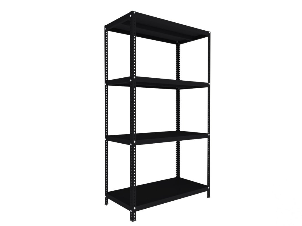 Skrutkovaný regál Biedrax 30 x 100 x 200 cm, čierny, 4 police, nosnosť 150 kg na policu