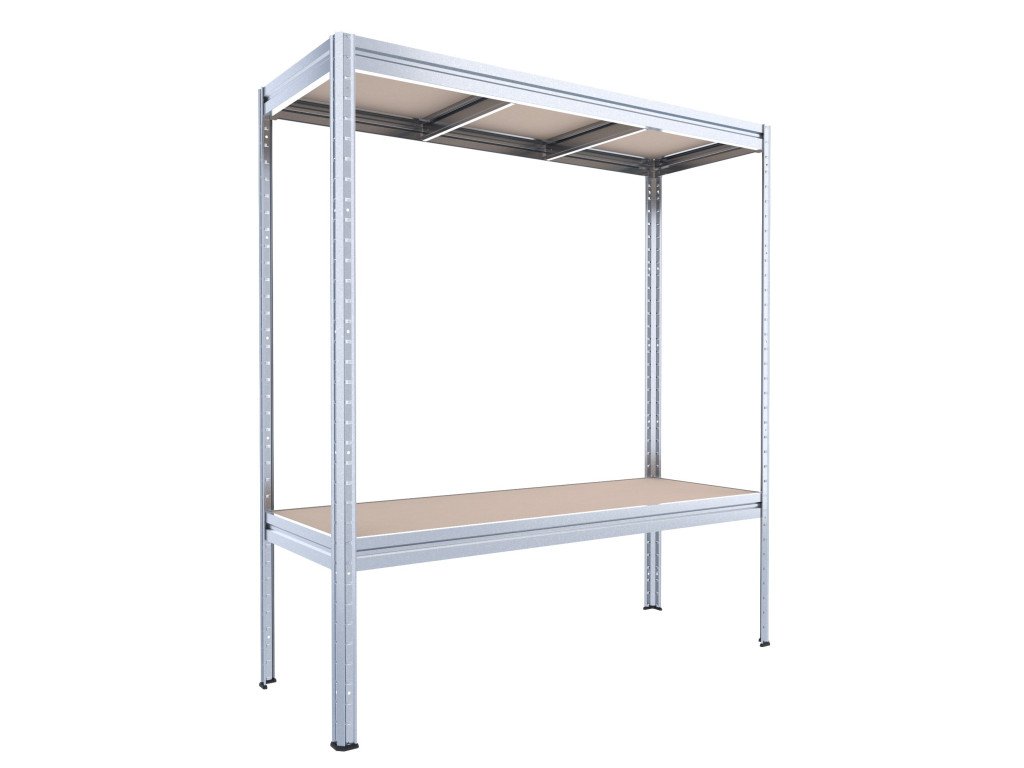 Velký policový regál Biedrax 60 x 200 x 180 cm, pozink, 2 police MDF, nosnost 350 kg na polici