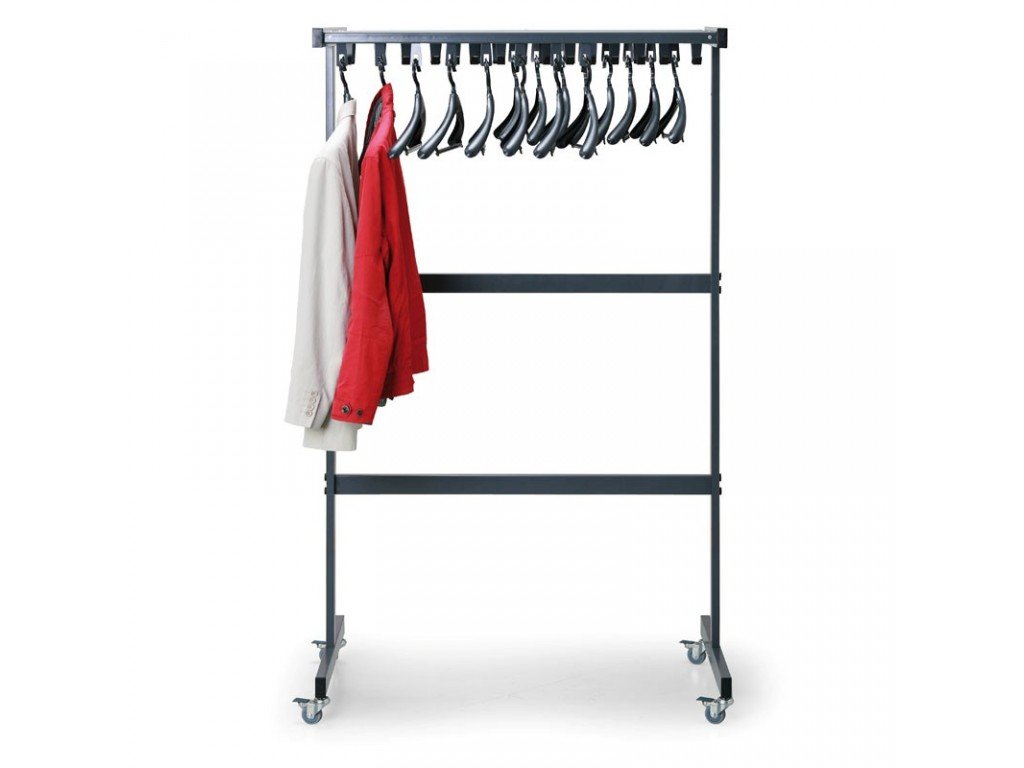 - stojanový věšák obsahuje 30 ks kovových háčků potažených plastem proti prodření poutek a 16 ks plastových černých věšáků